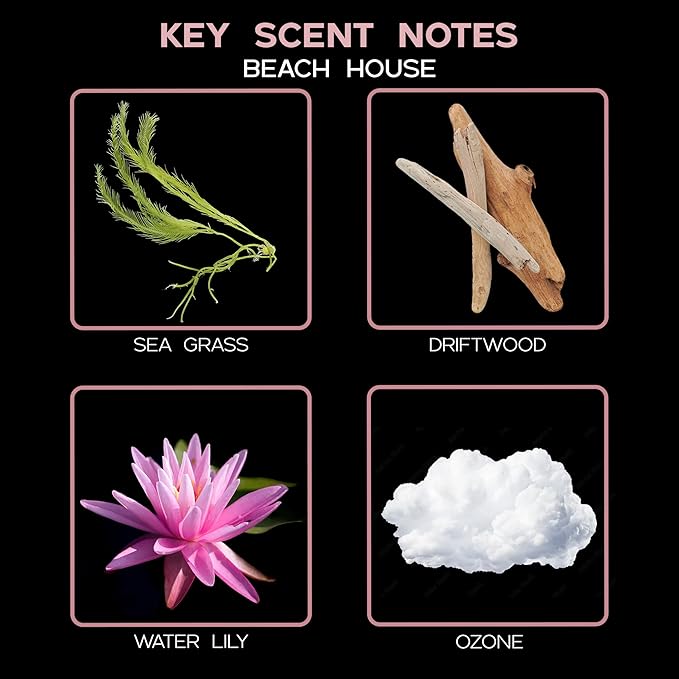 - π BEACH HOUSE β A Salt-kissed fragrance that is reminiscent of the Seaside's Fresh, Salty Ocean Air. An amazing Ocean fragrance that smells like Sea Grass, Sand, Summer Sky and the Ocean. We imagine it being in a modern Shelter Island beach house, with a stand up paddleboard in the driveway.