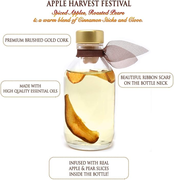 LOVSPA Apple Harvest Reed Diffuser Set with Fresh Red Apples & Roasted Pears, Infused with Real Fruit Slices, Room Scent Air Freshener Made in The USA