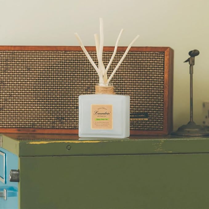 - LONG-LASTING ROOM DIFFUSER WITH ELEGANT FRAGRANCE – Transform your space with the blend of Green Tea, Orange Peel, and Cotton note. This premium scent diffuser offers up to 2 months of continuous freshness, making it a perfect addition to your home fragrance products. Ideal for enhancing shelf decor aesthetic, it doubles as an air freshener and stylish piece of bathroom decor, while being safe for babies and pets.