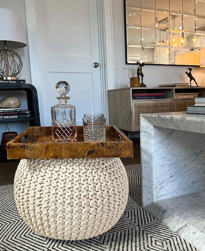 FRELISH DECOR Round Pouf Ottoman Hand Knitted 100% Cotton Pouf Foot Stool - Knitted Bean Bag - Floor Chair for Living Room Bedroom - Foot Rest for Couch (20 Diameter x 14 Height) - Natural
