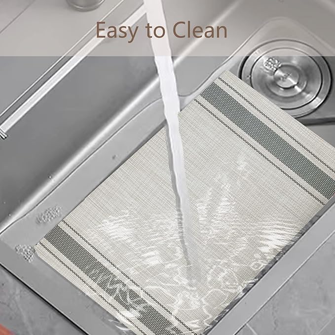 DACHUI Placemats Set of 4, Soft & Elegant Woven Vinyl Place Mats, Water Resistant, Heat Resistant, Washable, Durable Table Mats (Grey Stripes)