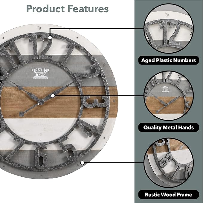 - FASHIONABLE AND FUNCTIONAL - This beautiful analog clock features an open face with a rustic planked design. Complete with a faux galvanized number ring for an antique look, this clock will be a charming update to your home or office space
