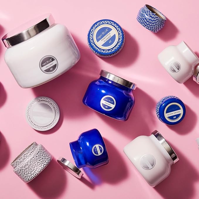 - About Us: Inspired by contemporary fashion trends, Capri Blue creates exciting new products for every season. Our Capri Blue Volcano soy wax blend candles are available in several beautifully colored candle jars. From small candles to large candles, these beauties are available in black, blue, white, aqua, and more - Buy them all! You can’t go wrong.