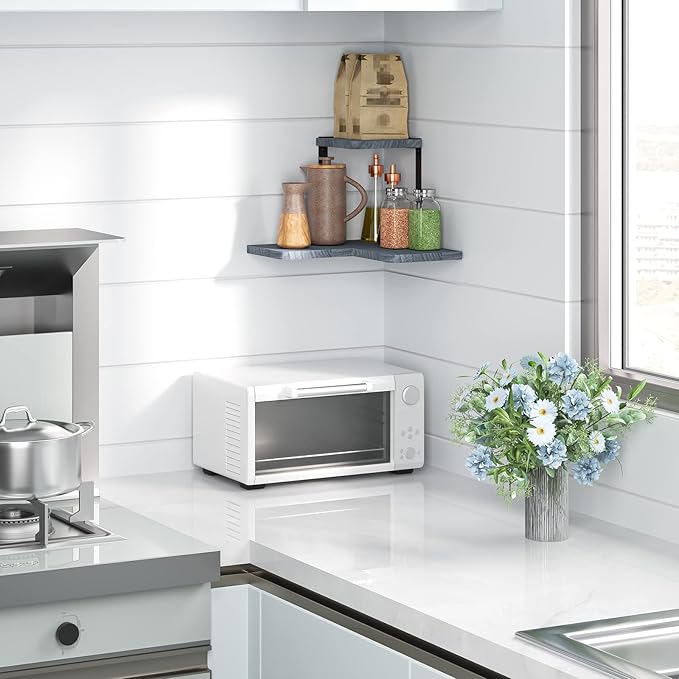- Functional Display Shelf - Floating corner shelf mounted in living room, bedroom, kitchen and display photo frame, candle, vase, cups etc.