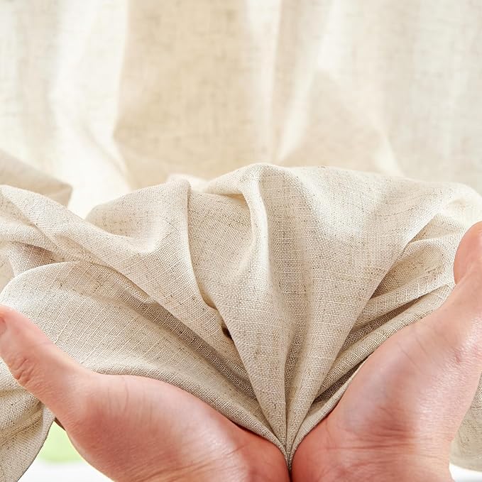 - Linen Blend Curtains: JINCHAN beige linen blend curtains W50" x L63" add a soft texture and classic elegance to your home. Each set includes two curtains,with a combined size of 100 inches by 63 inches. These semi sheer curtains feature a soft, luxurious drape, infusing the space with a casual warmth and refined elegance.