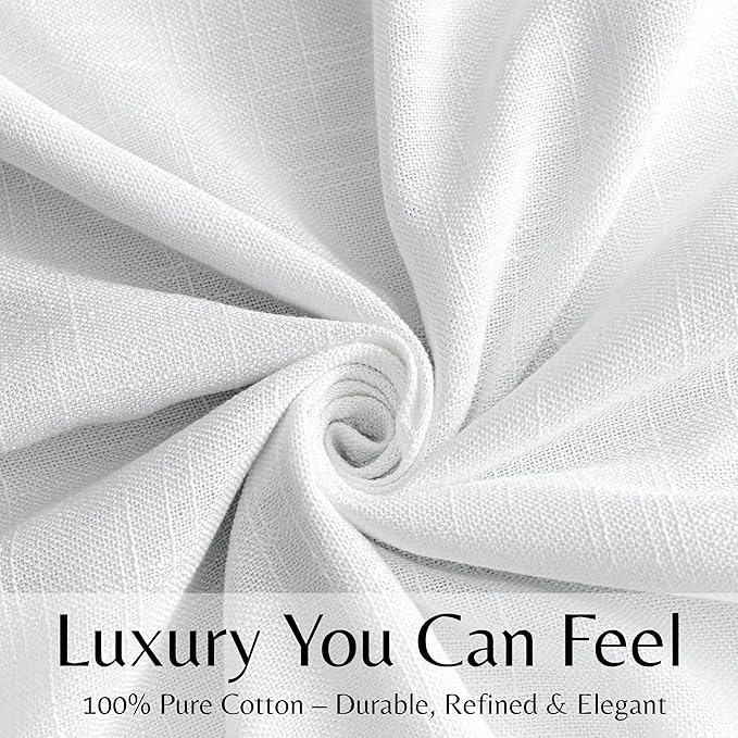 Ramanta Home White Cotton Light Filtering Curtains 50x84 Inches - Set of 2, Farmhouse Slub Textured Semi Sheer Drapes, Duck Cotton Fabric Living Room, Kitchen Back Tab Window Panels - White