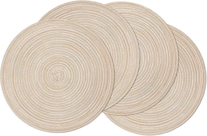 SHACOS Round Braided Placemats Set of 4 Round Table Mats for Dining Tables 15 inch Washable Kitchen Table Place Mats Indoor (Beige, 4)