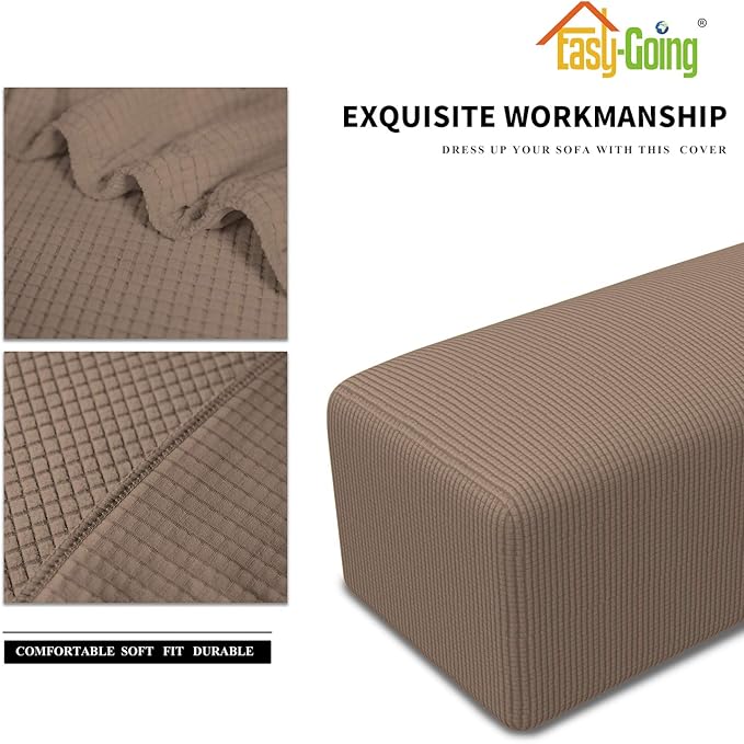 Easy-Going Stretch Ottoman Cover Folding Storage Stool Furniture Protector Soft Rectangle slipcover with Elastic Bottom(Ottoman Small,Camel)