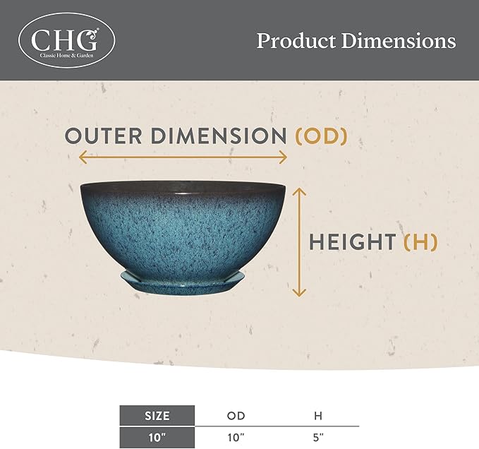 - DURABLE & LIGHTWEIGHT: Our 10"D x 10"W x 5"H pot is made from premium resin. Designed for lasting durability, this sturdy yet lightweight planter bowl ensures reliable performance while being easy to move and handle.