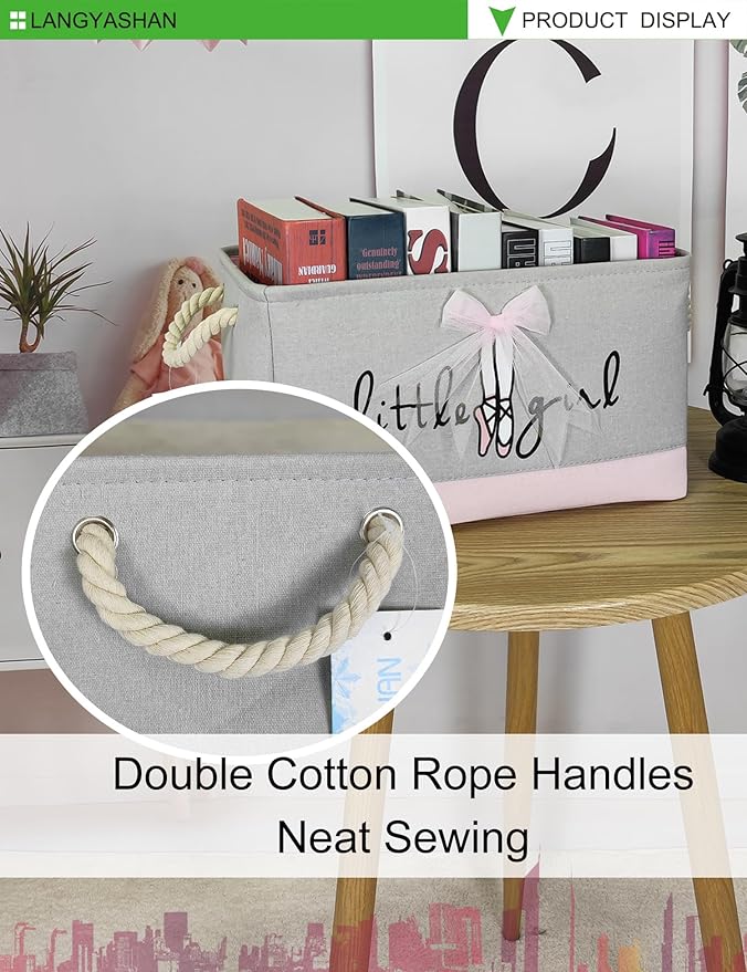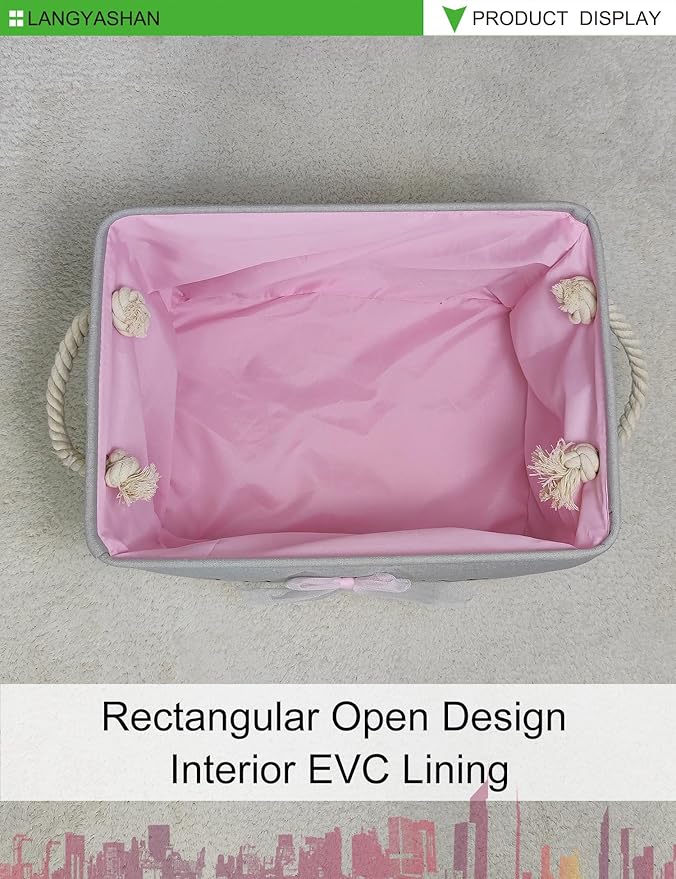 LANGYASHAN Rectangular Storage Bin Collapse Canvas Fabric Cartoon Storage Basket with Handles for Organizing Home Kitchen Boys and Girls Toys Office Closet Shelf Baskets (Rec lace)