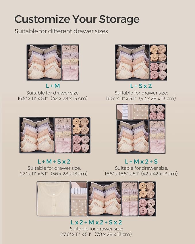 - STORAGE THAT SPARKS JOY: Store bras in large boxes, underwear in middle ones, and socks in small ones; these storage bins help you sort out belts, tights, or other simple things, making your home a tidy, fun place to be