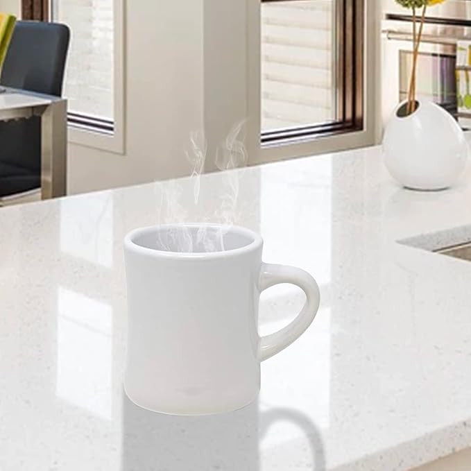 Funny Guy Mugs Classic Retro Diner Coffee Mug - Heavy Duty 10 Oz Stoneware Cup with Easy Grip Handle - Ideal for Hot and Cold Beverages (White, 10 Ounce)