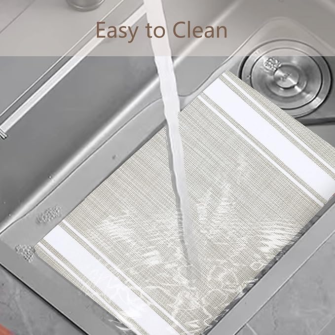 DACHUI Placemats Set of 6, Soft & Elegant Woven Vinyl Place Mats, Water Resistant, Heat Resistant, Washable, Durable Table Mats (White Stripes)