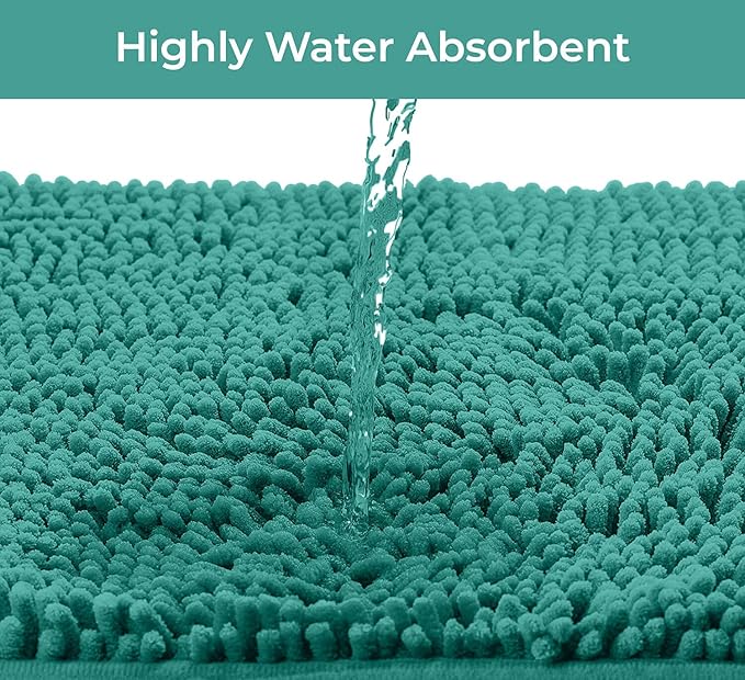 LuxUrux 2-Piece Bathroom Rug Set - Ultra-Plush Chenille Mats, Includes Runner Rug, Soft, Absorbent, Non-Slip & Stylish (27x47 & 16x24 inches, Turquoise)