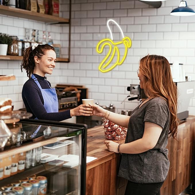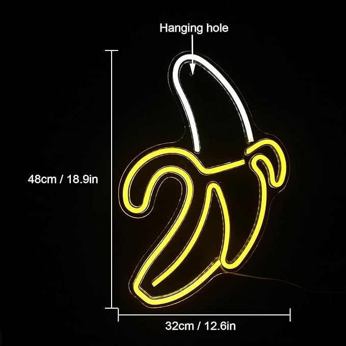 - Artful design -- Banana shape neon lights made of colored silicone LED tube, compared with traditional glass neon lights,neon wall light more bright and beautiful.gives off white yellow led light sign,a wonderful led sign to replace the boring desk lamp and add color to the darkest room.