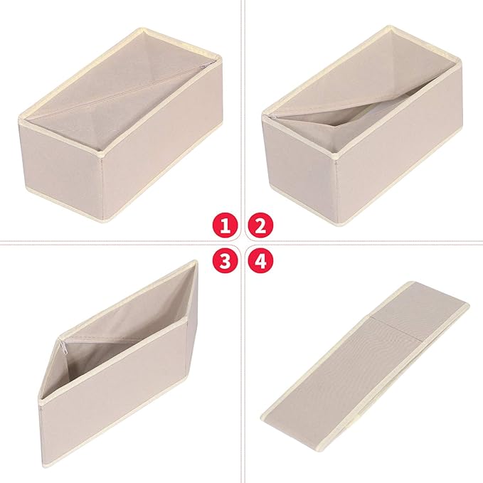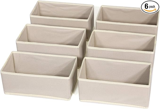DIOMMELL 6 Pack Foldable Cloth Storage Box Closet Dresser Drawer Organizer Fabric Baskets Bins Containers Divider for Clothes Underwear Bras Socks Lingerie Clothing,Beige 060