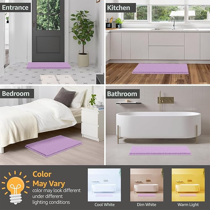 LuxUrux 2-Piece Bathroom Rug Set – Plush Chenille Runner & U-Shaped Toilet Mat, Soft, Absorbent & Non-Slip Design (20x20 U & 27x47 inches, Lavender)