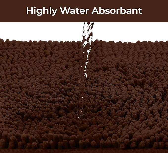 LuxUrux 2-Piece Bathroom Rug Set – Ultra-Plush Chenille Mats, Includes Runner Rug, Soft, Absorbent, Non-Slip & Stylish (27x47 & 16x24 inches, Brown)