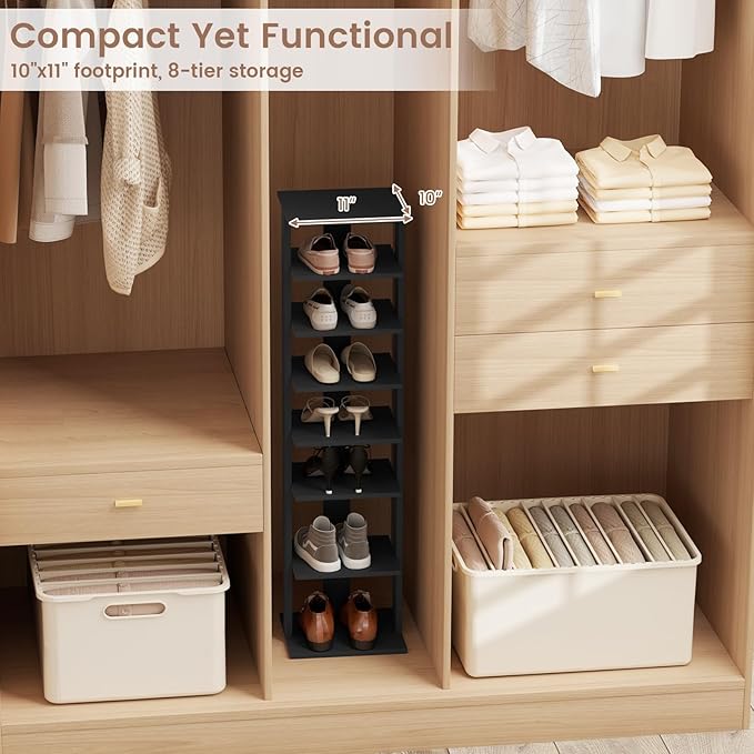 Tangkula 8-Tier Vertical Shoe Rack, Space-Saving Corner Shoe Organizer for 7 Pairs, Narrow Shoe Storage for Entryway, Front Door, or Closet