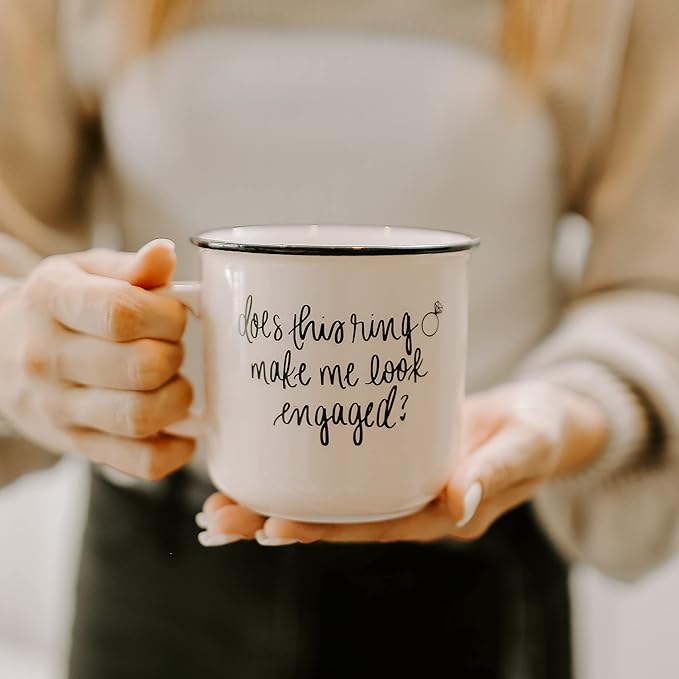 Sweet Water Decor Does This Ring Make Me Look Engaged Mug | 16oz Campfire Style Mug for Brides | Bridal Shower, Engagement Gift