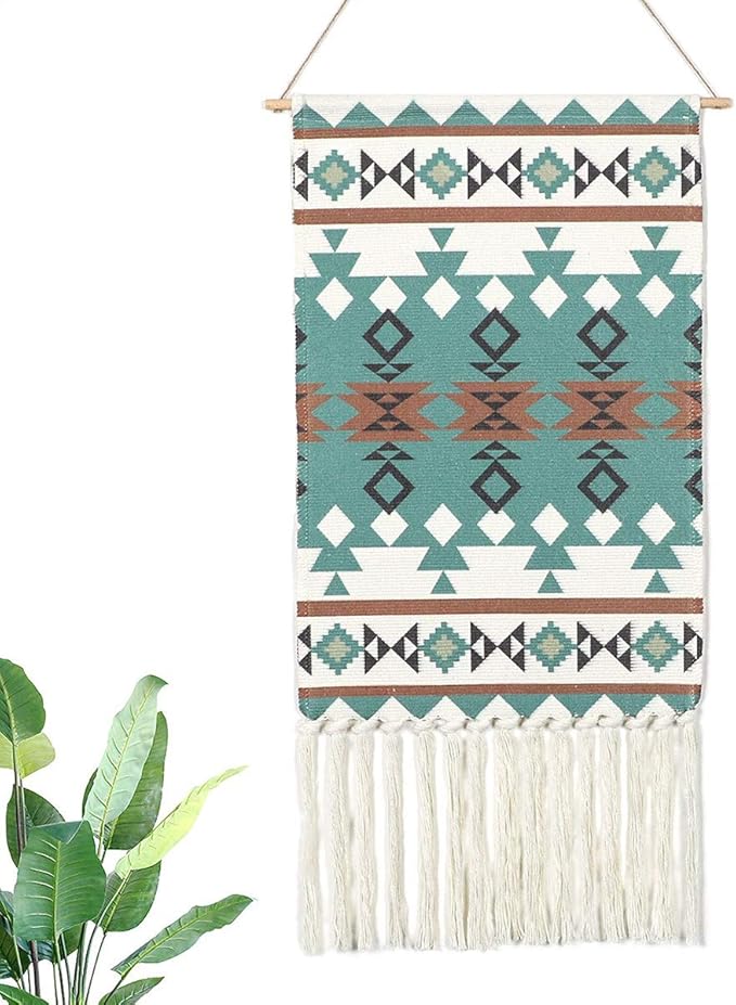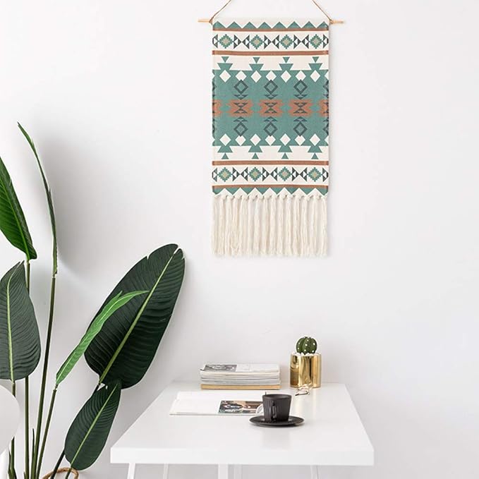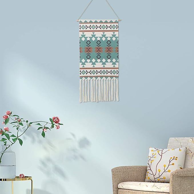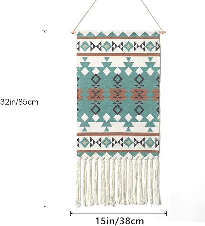 Dremisland Macrame Woven Wall Hanging Tapestry- Boho Chic Bohemian Home Decor Geometric Art Decor Boho Backdrop - Beautiful Apartment Dorm Room Door Decoration, 17.7" W x 32" L (Green Geometric)