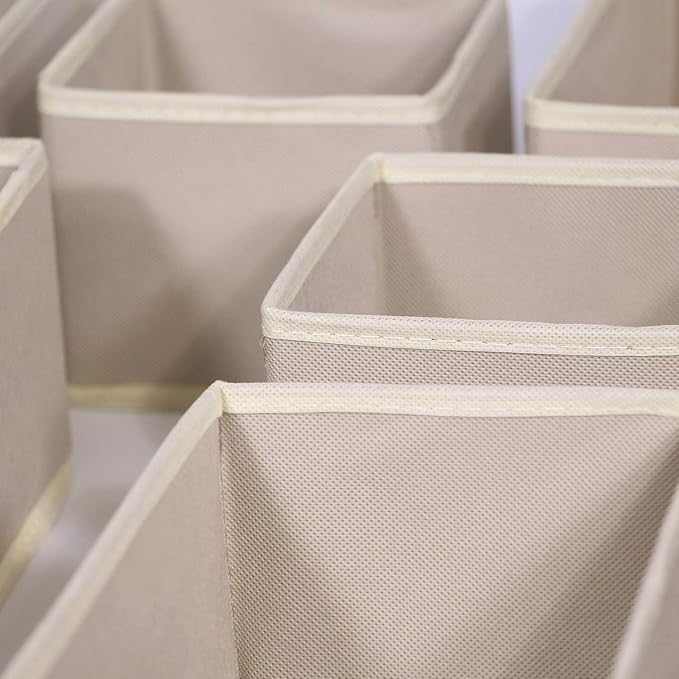 DIOMMELL 12 Pack Foldable Cloth Storage Box Closet Dresser Drawer Organizer Fabric Baskets Bins Containers Divider for Clothes Underwear Bras Socks Lingerie Clothing, Beige 444