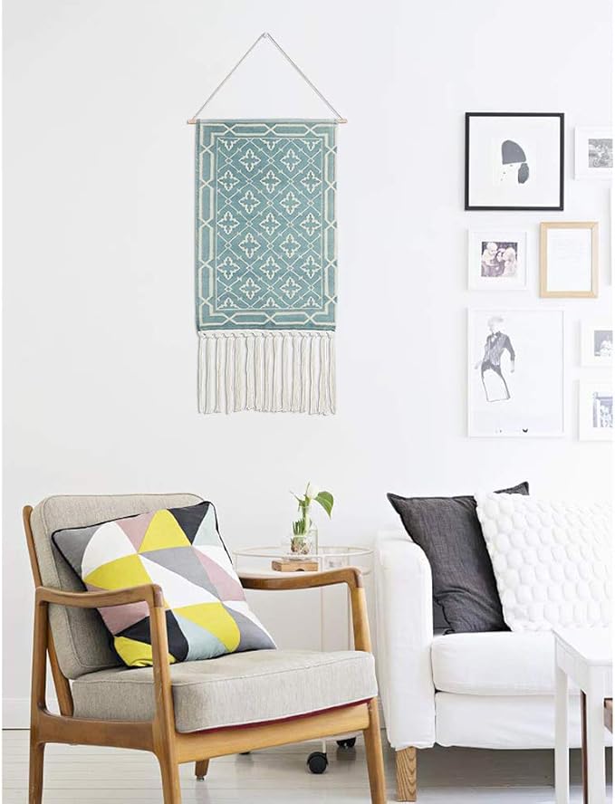 - 【Perfect Home Decor】This simple and elegant macrame hanging is perfect for hobo lovers to decorate their room, dorm, kid's room, door .It creates a relaxed feeling in the room. It also can be used as a wall art for the head of your bed, on the gallery wall or small/narrow accent walls, over a couch or by a window for a boho touch to any space.