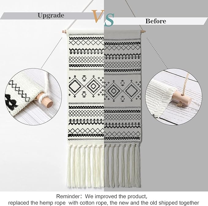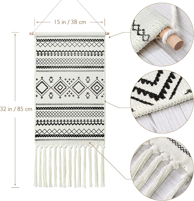 - 【Boho Home Decor】This simple and elegant macrame hanging is great for boho lovers to decorate their room, dorm, kid's room, door .It creates a relaxed feeling in the room. It also can be used as a wall art for the head of your bed, on the gallery wall or small/narrow accent walls, over a couch or by a window for a boho touch to any space.