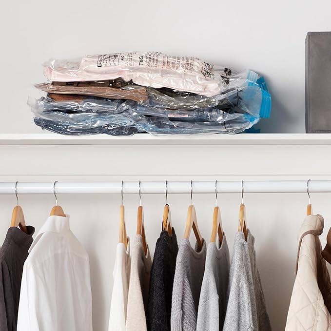 Amazon Basics Vacuum Compression Zipper Storage Bags With Hand Pump, Medium, Clear, 5-Pack, White, Sky Blue