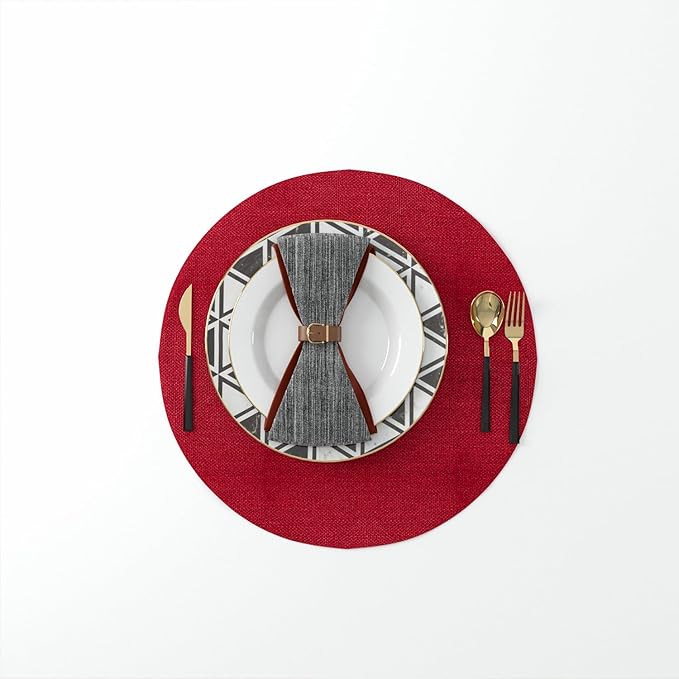 Set of 4 Decorative Round Placemat 15 Inch Soft Linen eco-Friendly Fabric Handcrafted Machine Washable Indoor & Outdoor Tablemat Burgundy