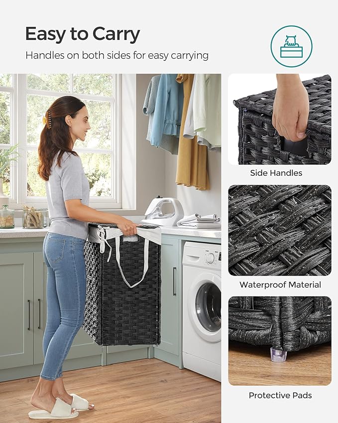 - [Stable Steel Frame & Breathable Synthetic Rattan] Crafted with a sturdy steel frame and select synthetic rattan, this laundry hamper with lid is stable, waterproof, breathable, and can stay dry in humid environments