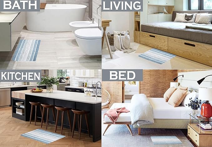 - SOFT & COMFORTABLE UNDERFOOT :Experience ultimate comfort with plush cotton bathroom rugs that provide a soft and cozy feel underfoot. Designed to cushion your feet after a shower or bath, these rugs offer a soothing and luxurious touch, making your bathroom experience more enjoyable. The natural cotton fibers ensure a gentle, skin-friendly texture, perfect for everyday use.