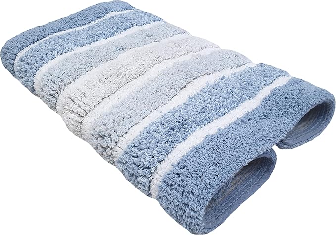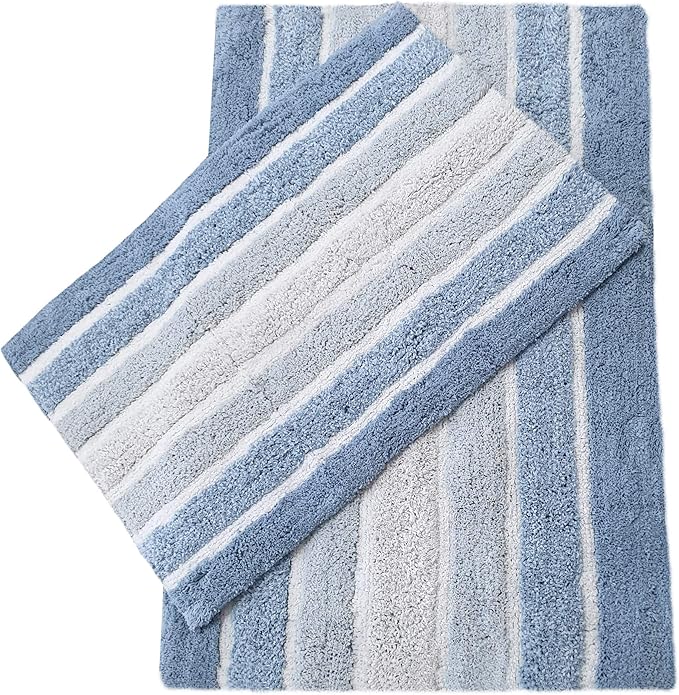 Bathroom Rugs Set 2 Piece Blue Alpine Stripe Reversible Cotton Bath Mats for Bathroom Floor |Quick Dry Bath Mat for Tub Spa Shower|Living Room Entry Way Door Mats |21x32 & 17x24 Inches