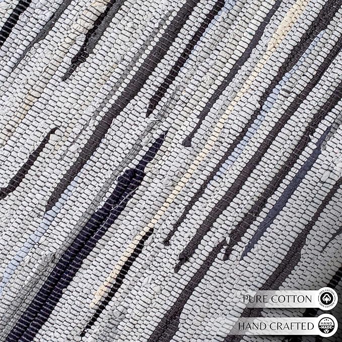 Rug Area Rugs Cotton Charcoal 2x3 Ft Multicolour Chindi for Livingroom Bedroom Washable RagRug Reversible Farmhouse Kitchen RunnerRug Carpet Area Runner Mat for Hallway, Entryway