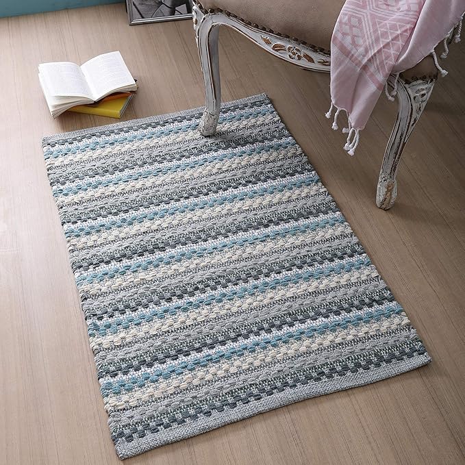 Rug Area Rugs Cotton 2x3 Ft Chenille Yarn for Livingroom Bedroom Washable RagRug Reversible Farmhouse Kitchen RunnerRug Carpet Area Runner Mat for Hallway, Entryway|Aqua Combo