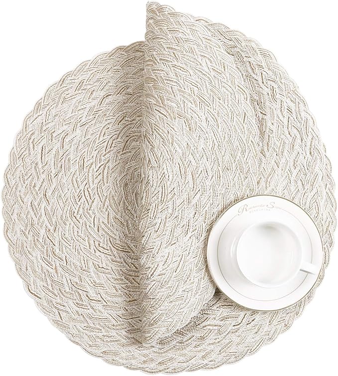 SHACOS Round Braided Placemats 15 inch Set of 6 Boho Thick Washable Kitchen Table Placemats for Home Wedding Party (T-Ivory, 6)