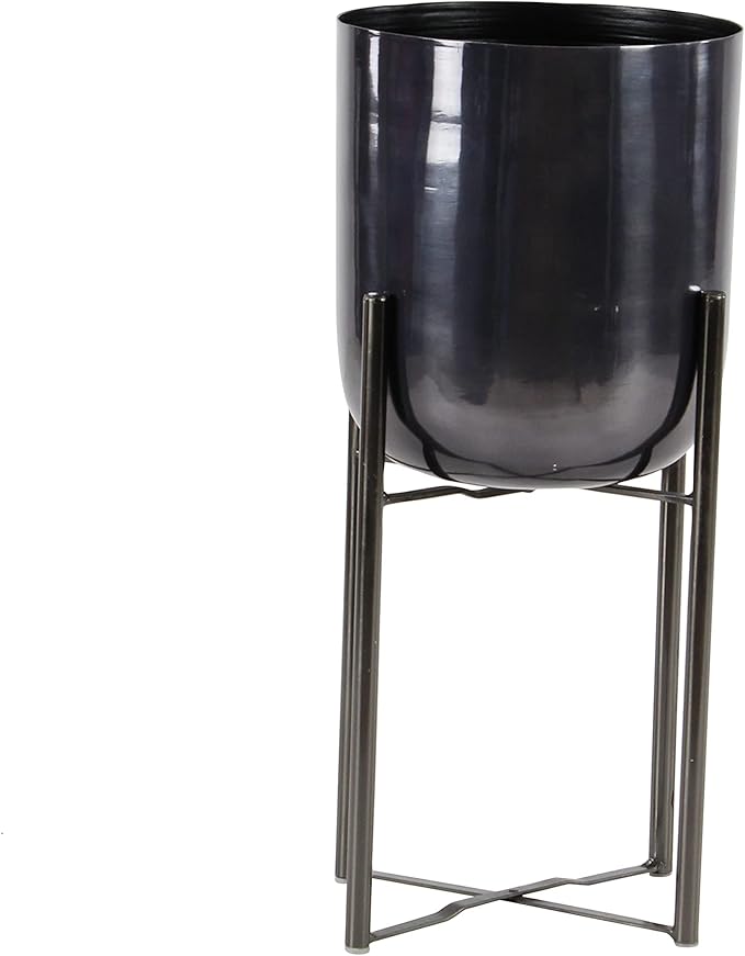 CosmoLiving by Cosmopolitan Metal Indoor Outdoor Planter Dome Large Planter Pot with Removable Stand, Set of 2 Planters 19", 22"H, Black
