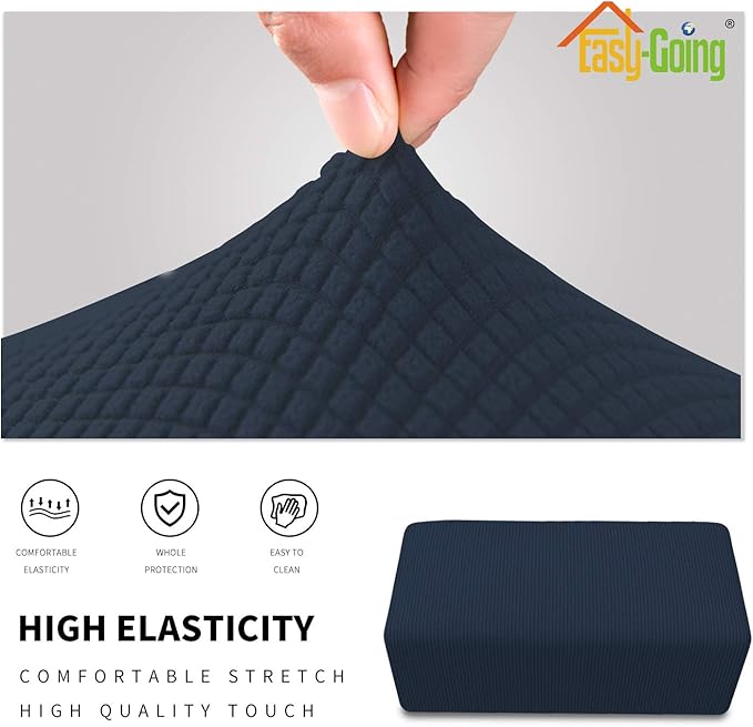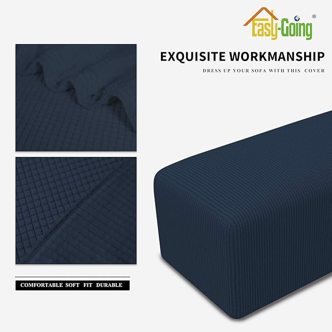 Easy-Going Stretch Ottoman Cover Folding Storage Stool Furniture Protector Soft Rectangle slipcover with Elastic Bottom(Ottoman Large,Dark Blue)