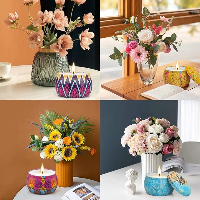 Scented Candles Gifts Set for Women, Aromatherapy Candles for Home Scented, Upgraded Large Tin of Soy Candle Lavender Candle Birthday Gifts for Women Mom Bath Spa Meditation Valentine Gifts Candles