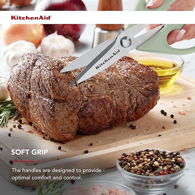 KitchenAid All Purpose Kitchen Shears with Protective Sheath for Everyday use, Dishwasher Safe Stainless Steel Scissors with Comfort Grip, 8.72-Inch, Pistachio