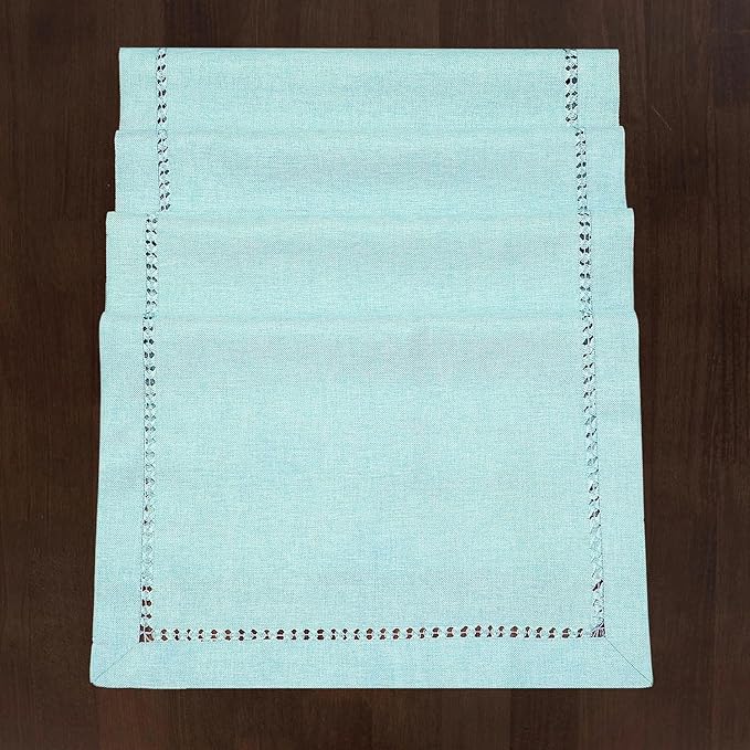 Grelucgo Set of 4 Handcrafted Solid Aqua Color Dining Table Place-mats, Double-Hemstitched, Rectangular 12 x 18 Inch