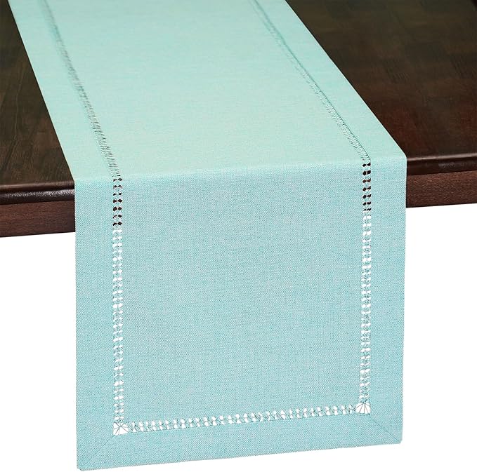 Grelucgo Handcrafted Solid Color Dining Table Runner, Dresser Scarf, Double-Hemstitched (Aqua, 14 x 36)