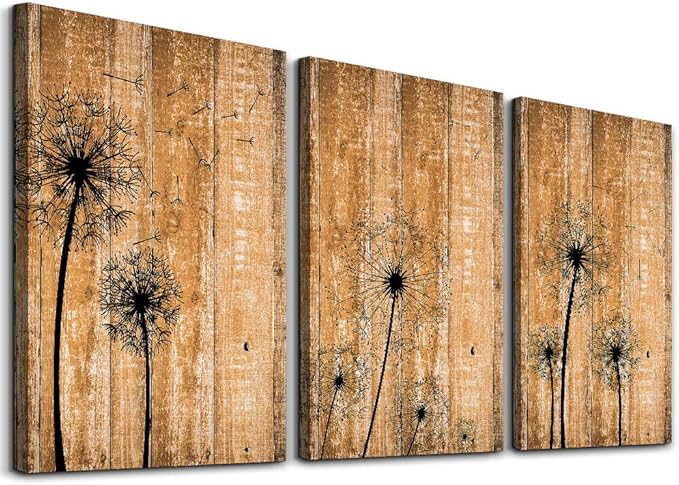 modern Bathroom wall decoration for bedroom canvas wall art for living room kitchen works of art dandelion wood grain flowers Watercolor painting canvas prints office home decoration 16 "x 24" 3 piece