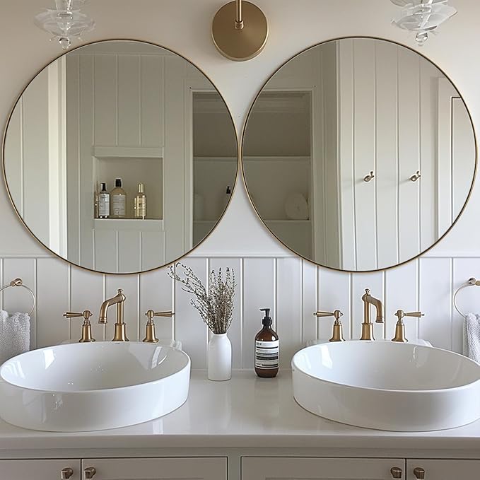 - Distinctive Wall Mirror for Home: This timeless round gold ( (not rose gold) metal frame mirror matches any room and any decor perfectly. Use as a reflective bathroom mirror, vanity mirror, or entry mirror. Add light and enhance the beauty of any space in your home instantly!