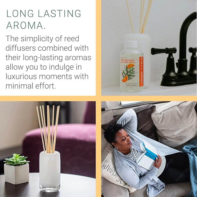 SpaRoom Reed Diffuser Oil Refill – Cedar Citrus Scent, 8oz Bright and Earthy Blend with Lemon Essentials, Invigorating Aroma for Home, Spa, or Office, Long Lasting Fragrance Solution