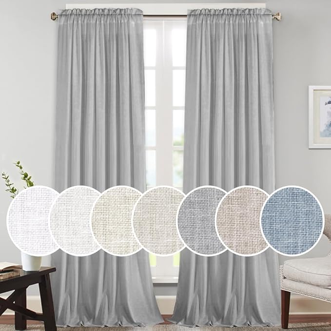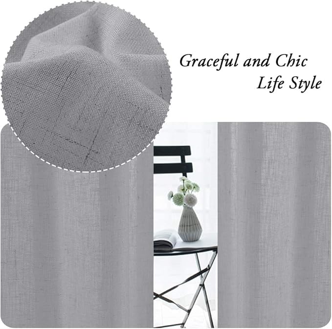 PrinceDeco Linen Curtains Rod Pocket Window Drapes for Bedroom Thick Linen Burlap Curtains for Living Room Vertical Drapes Burlap Look Farmhouse Country Decor(Dove, 52" W x 96" L)