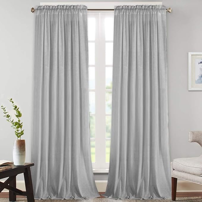 - PRIVACY ASSURED: These elegant linen textured draperies are not transparent, it is moderate weight for semi sheer and light filtering effect, add a refreshing charm to your window and lets in some beautiful diffused light, yet reduce energy usage and provide enough privacy protection, provide your a hazy space and softer vision