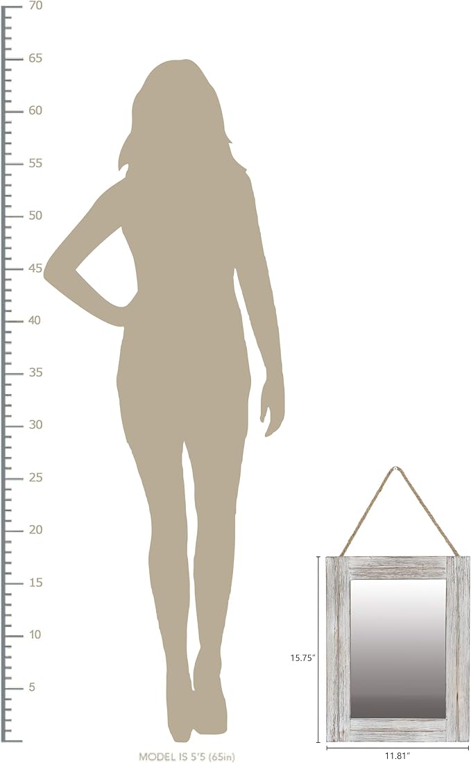 16 X 12 Inch Rustic Wood Framed Wall Mirror with Hanging Rope for Farmhouse Decor, for Entryway, Bedroom, Bathroom, Dresser, Brown