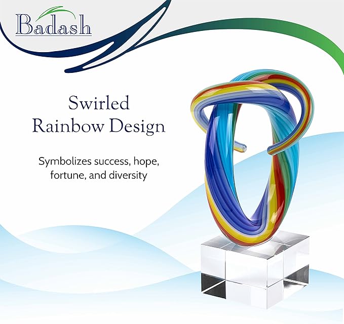 - MINI RAINBOW - This intricate glass sculpture is designed with 7 vibrant rainbow colors and a refined, dynamic form. This blown glass decor creates a powerful effect in any room as it symbolizes success, hope, fortune, and diversity.