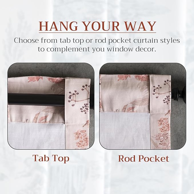 - High-quality cotton: Made from 100% breathable cotton, this curtain with rod and loop pockets offers a soft, elegant touch to any space. Ideal for living room, bedroom, dining, or home office, it brings charm and character without overwhelming your décor